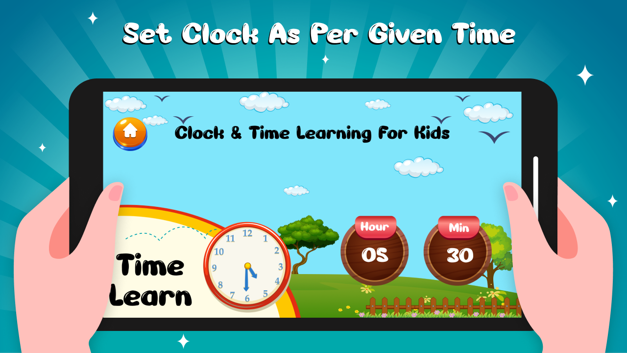 - Time Learning помогает изучать время с помощью функций определения времени.