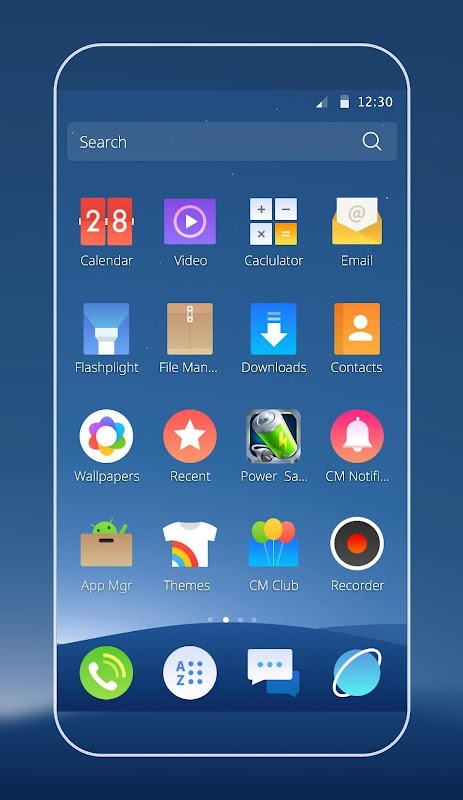 CM Тема запуска по умолчанию - бесплатная тема, разработанная специально для пользователей СМ Launcher, включающая десятки единообразных значков и художественных обоев, с которыми можно легко персонализировать Ваше устройство.