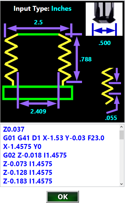 Быстро и легко создайте программу Cnc G Code для фрезерования ID и OD потоков на станке с ЧПУ. Это часть приложения Web Machinist Mobile Pro. В приложении Web Machinist Mobile Pro есть много калькуляторов с ЧПУ для машинистов, программистов и инспекторов контроля качества. Резьбонарезной калькулятор, Калькуляторы радиуса токарного станка с ЧПУ, Калькулятор круговых болтов, Калькуляторы колесных болтов, включая калькуляторы углов, списки G-кодов, списки М-кодов, калькуляторы кругов, включая калькулятор круговых сегментов, калькулятор кругового сечения, базовые калькуляторы кругов, калькулятор прямоугольного треугольника, Косой треугольный калькулятор, Калькулятор углового преобразования, Калькуляторы машинистов-треугольников, Применения ЧПУ, Калькуляторы веса металла для метрических и имперских расчетов, Постоянные циклы токарного станка с ЧПУ Fanuc, включая калькуляторы циклов резьбы G76, Простой токарный станок с ЧПУ Токарный станок с ЧПУ приложение solutions, калькулятор веса металла, калькуляторы G-кода фаски, метчики метчиков и метчиков, метрические конверсии, счетчики глубины зенковки, калькуляторы глубины сверления по центру, общие преобразования, сверление с ЧПУ, станки с ЧПУ и токарные станки с глубоким отверстием, калькуляторы для измерения ласточкиного хвоста , Blueprint символы, G-коды, M-коды, формулы обработки и калькуляторы, формулы и калькуляторы скорости шпинделя и скорости подачи, формулы решения круга, шаблоны отверстий, шаблоны массивов отверстий, включая шаблоны полного круга и частичного круга, калькуляторы для измерения диаметра шага проволочных нитей для объединенных нитей, метрических нитей, нитей Acme и метрических трапецеидальных нитей , Токарные станки с ЧПУ, калькуляторы компенсации радиуса носа, контроль качества, ручная обработка, скорости удаления металла, фрезерование с ЧПУ, эталон, круговая ось, скорость и подача, калькуляторы размеров имперского и модульного цилиндрического зубчатого колеса, нарезание резьбы с ЧПУ, резьба с ЧПУ, ручные токарные калькуляторы, унифицированные Резьбы, метрические резьбы, резьба Acme, метрические трапецеидальные резьбы, цилиндрические зубчатые колеса, цилиндрические цилиндрические зубчатые колеса, цилиндрические цилиндрические зубчатые колеса, калькуляторы площадей, треугольники, круговые калькуляторы, фрезерный станок, размеры цанговых отверстий, калькуляторы резцов ключей, тригонометрические калькуляторы, калькуляторы шаблонов отверстий, колесо Калькуляторы с болтовым рисунком, Калькуляторы для ручной мельницы, Инструменты и скобяные товары, Синусоиды и составные синусоиды ors, тригонометрия и геометрия, калькулятор кругов, калькуляторы по математике, калькуляторы скорости шпинделя токарного станка, калькуляторы скорости нарезания резьбы с ЧПУ, калькуляторы шероховатости поверхности, калькуляторы скорости сверления, калькуляторы скорости нарезания резьбы, токарные станки с ЧПУ и прочие калькуляторы. Круглый карманный фрезерный калькулятор. Это должна быть программа для машинистов, машинистов с ЧПУ, механических мастерских, инспекторов контроля качества, операторов по наладке ЧПУ, программистов с ЧПУ.