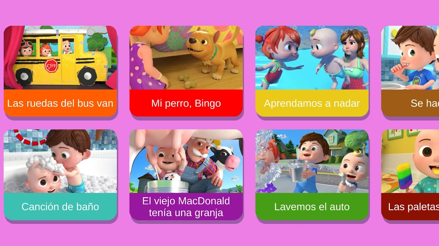 A continuación se muestran videos de canciones infantiles en esta aplicación y se seguirán agregando y actualizando: