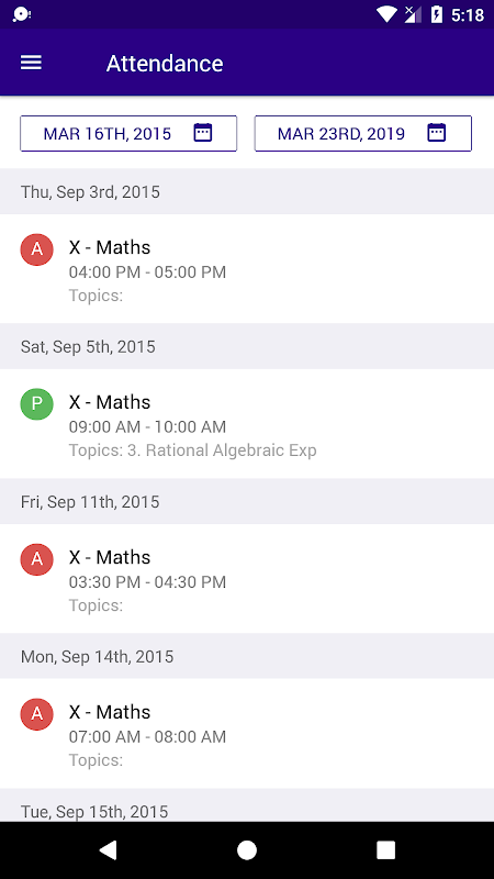 * Track daily attendance in various subjects.