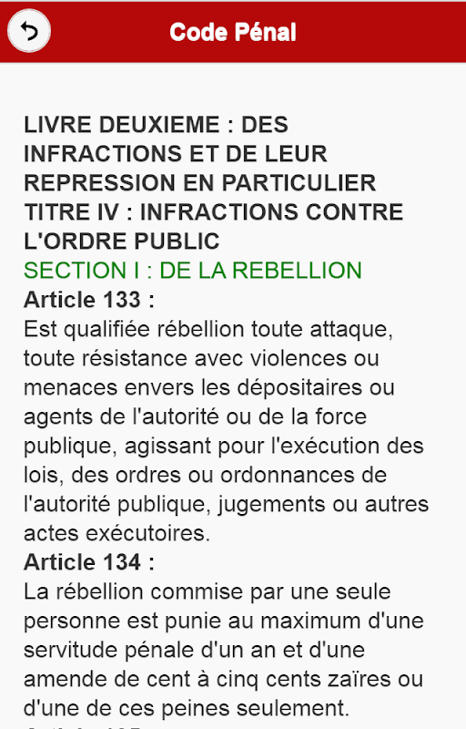 Cette application android contient les articles sur le code pénal de la république démocratique du Congo.