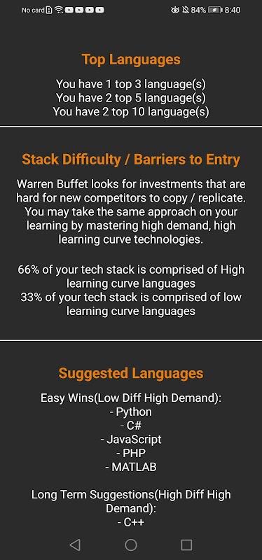 Code Rank — это приложение, разработанное, чтобы помочь разработчикам программного обеспечения/программистам лучше понять свое положение в отрасли. После ввода вашего технического стека/языков программирования, с которыми вы знакомы, приложение создает отчет, который показывает, входят ли известные вам языки в число лучших языков мира. В отчете также показан уровень сложности вашего стека технологий и даны советы о том, что следует изучать дальше на основе технологий, которые вы уже знаете, и технологий, которые вы не знаете, но которые пользуются большим спросом в отрасли.