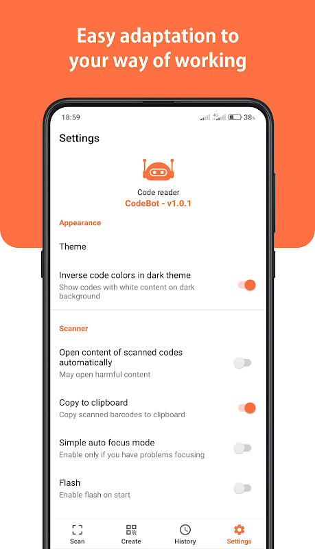 Настройте считыватель QR-кода в соответствии с вашими потребностями в настройках с помощью таких параметров, как: