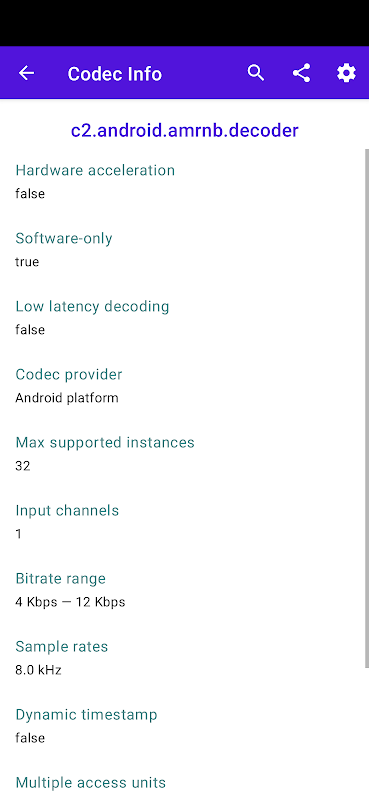 Codec Info — это простой инструмент для разработчиков, который предоставляет подробный список кодировщиков/декодеров мультимедиа (кодеков) и типов DRM, доступных на вашем устройстве Android.