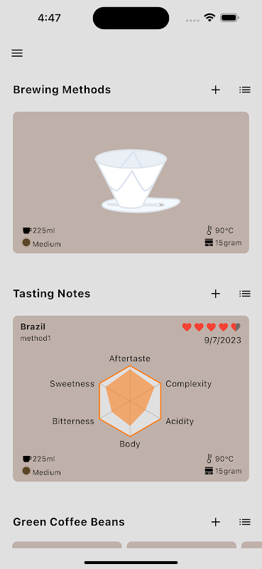 Примечания о вкусе, такие как таймер заваривания, дата обжарки, таблица вкусов, аромат и т. Д.