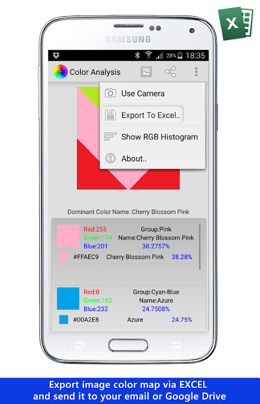 * Вы также можете экспортировать цветовую карту изображения к вашей электронной почте или поделиться им в облаке.