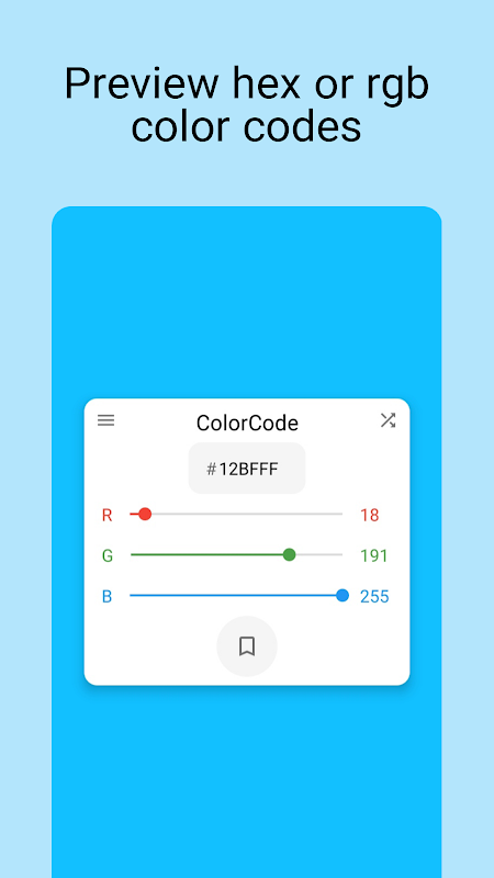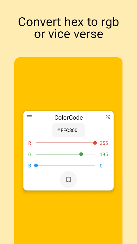 Color Code Picker — идеальное приложение для предварительного просмотра и выбора цветового кода (HEX или RGB), преобразования шестнадцатеричного цветового кода в rgb и наоборот, а также сохранения полезных цветовых кодов в коллекции.