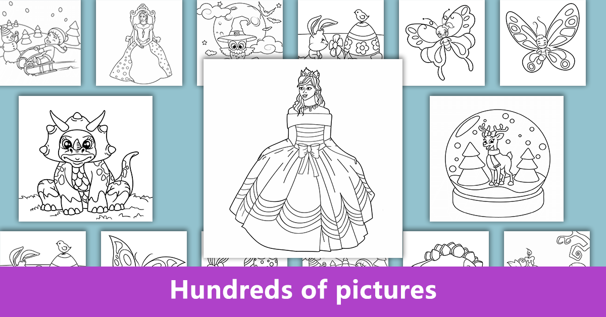 Эта виртуальная раскраска поможет вашему ребенку раскрыть свой творческий потенциал и в то же время получить безграничное удовольствие. Она помогает вашему ребенку развивать координацию рук и глаз и улучшать двигательные навыки. Дети могут выбирать из различных раскрасок из разных категорий, таких как «Принцессы», «Бабочки», «Рождество», «Пасха», «Хэллоуин» и «Динозавры» и других.