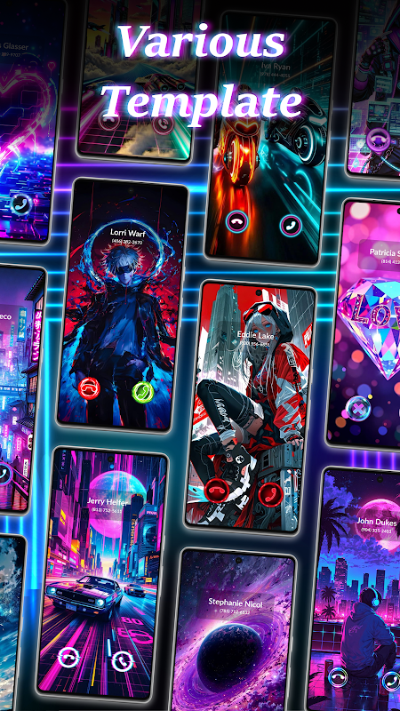 - Красочные и популярные темы: Множество красивых, динамичных и стильных экранов звонящего, доступных для украшения вашего входящего звонка с помощью приложения для экрана телефонного звонка.