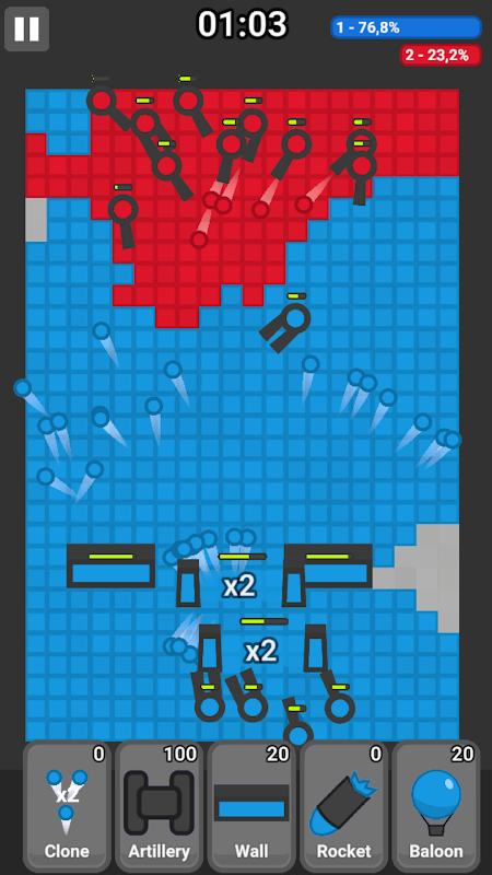 Color Wars is a game about battling with other colors to capture the most land possible. Use cannons, tanks, rockets and combine tactics to win