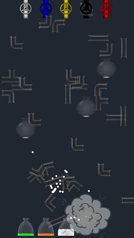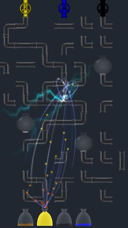 Во-первых, игрок должен повернуть трубы, чтобы подогнать их к лучшему положению, а после включения жидкости, если план достаточно хорош, цветная вода попадет в нужную стеклянную колбу.