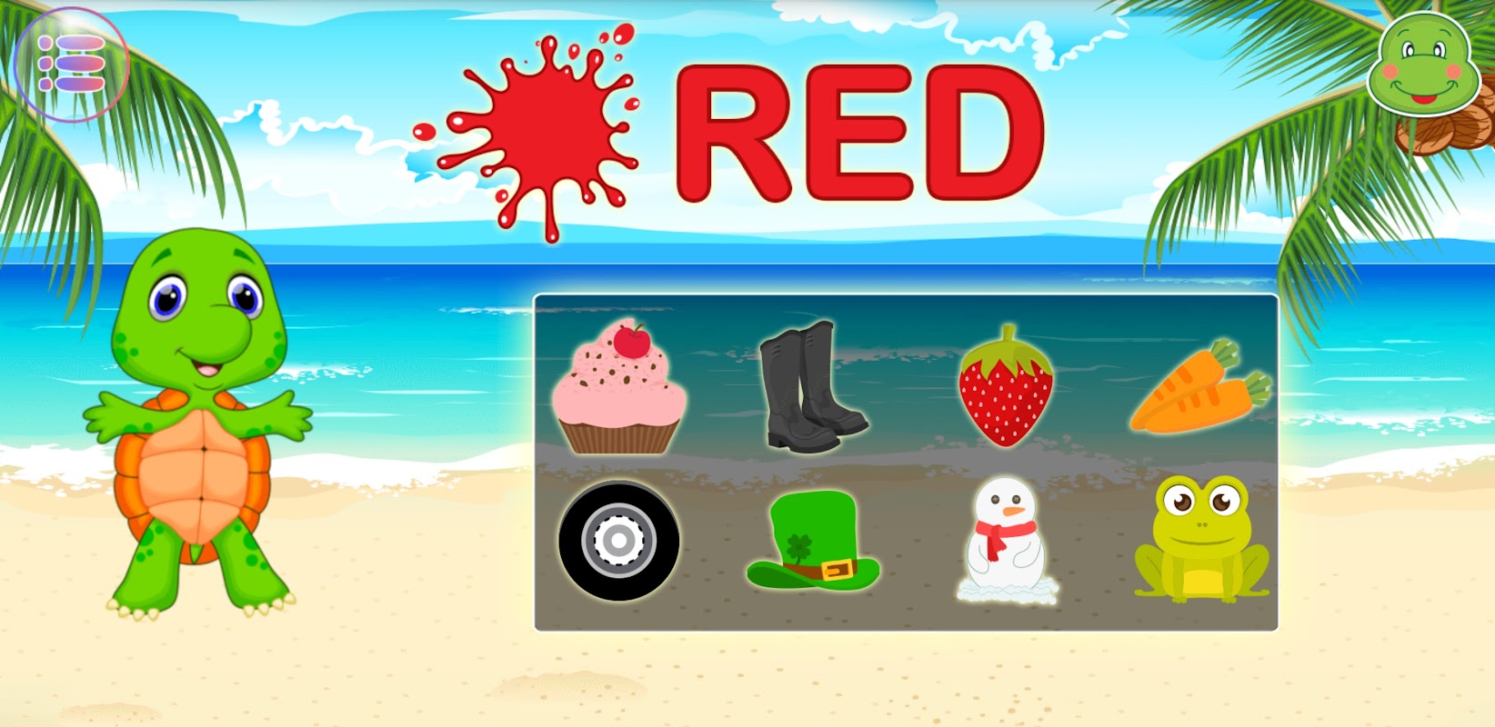 Это приложение помогает маленьким детям научиться цветам с множеством интересных разделов.