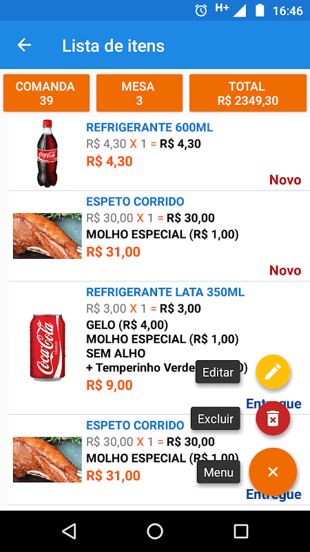 • Inclusão, exclusão e edição de itens das comandas