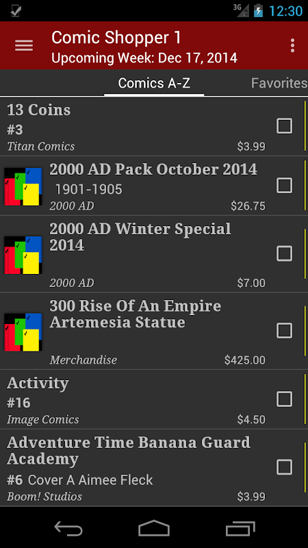 Если вы не купите некоторые или все предметы на этой неделе, они останутся в вашем списке покупок, даже когда появится список на следующей неделе. Когда вы записываете то, что покупаете, это помогает приложению определять и выделять ваши любимые серии комиксов, что ускоряет выбор в будущем.