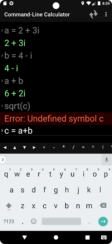 Приложение также поставляется с комплексной встроенной справочной системой с множеством примеров. CLCalculator работает на платформе math.js (https://mathjs.org/)