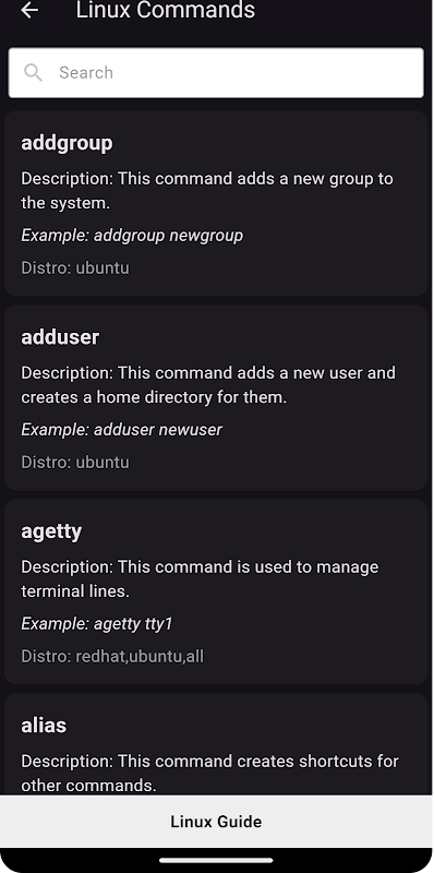 Откройте для себя идеальный инструмент для освоения библиотеки команд Linux с помощью приложения Command Line Mastery and Information, независимо от того, являетесь ли вы новичком, опытным администратором Linux или инженером DevOps. Наше приложение создано, чтобы предоставить вам все необходимое для успеха в вашем путешествии по Linux.