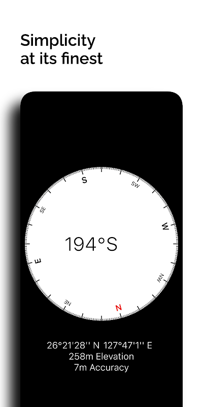 Простое приложение компаса, которое показывает направление, положение, высоту и точность.
