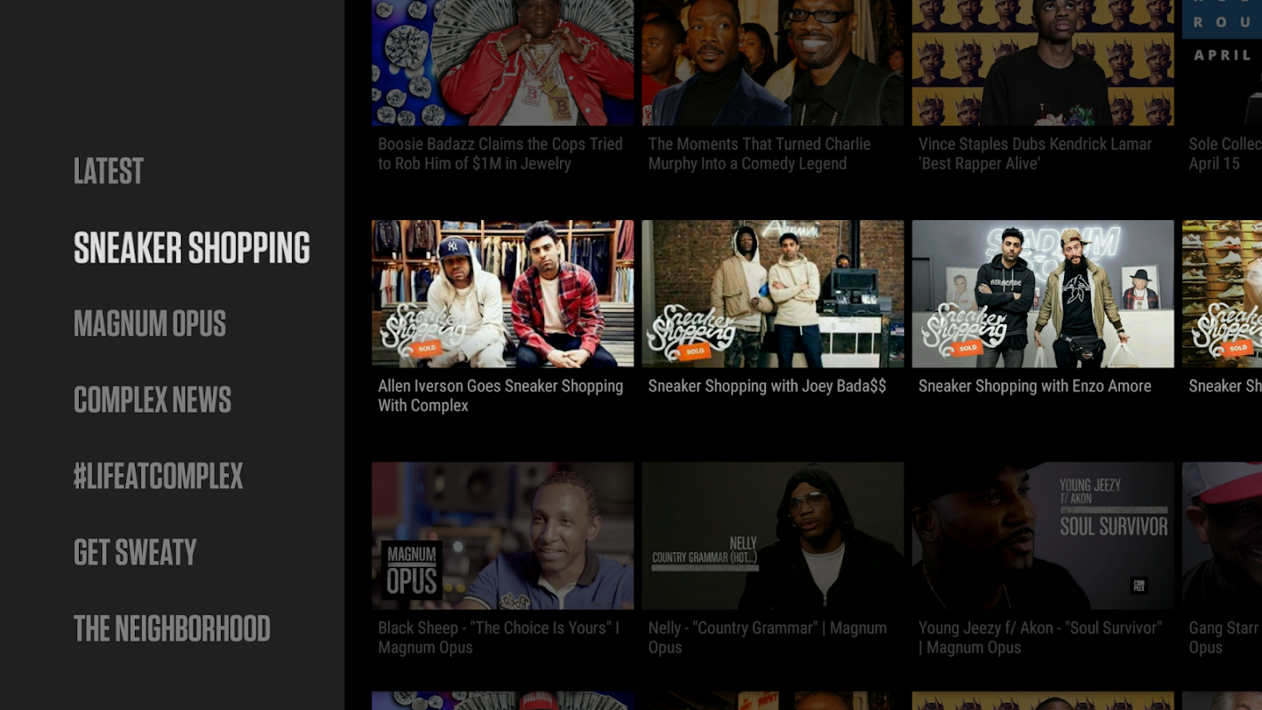 Комплекс видео приложение имеет ежедневные обновления от комплекса новостей, а также эпизоды из нашей самой популярной серии, в том числе кроссовки Магазины, Hot Ones, Magnum Opus, и окрестности.