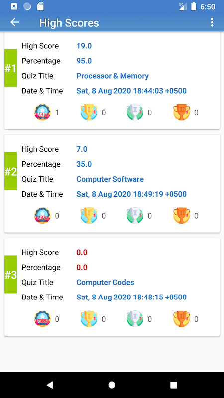 - Quiz feature with complete configurations, detailed reports, top scores and rewards