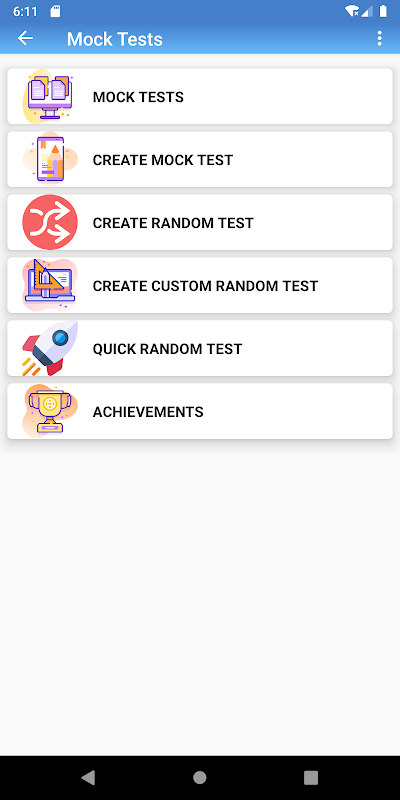 - Custom Mock Tests (User can create, edit, delete, take mock test quiz, view reports etc.)