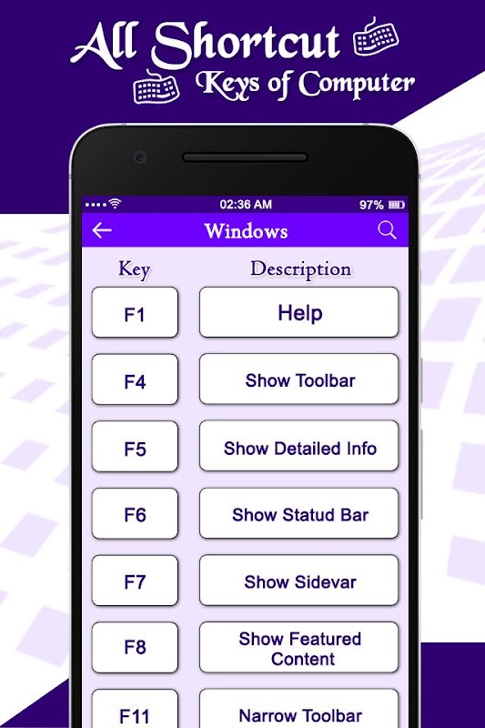 Computer Shortcut Keys is educational application provide different many shortcuts tricks so that you can increase your work speed.