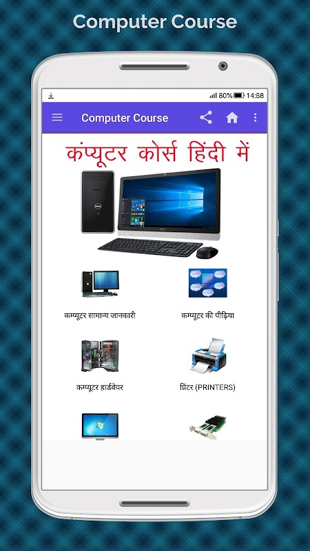 This Computer Course in Hindi (Learn Computer in Hindi) application is specially designed for the people who want to learn the basics of the computer operations. You can learn operating a computer in just 30 days by using Computer course Sikhe app . This application is in HINDI and explain all the things very clearly with images and simple text, so that anyone can understand and learn computer course in hindi. It does not require you to be an expert in computer programming or english to learn computer basics.