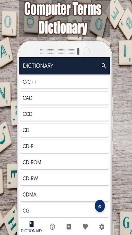Словарь компьютерных терминов дает определение компьютерных терминов таким образом, чтобы любой мог их понять. Это приложение-словарь компьютерных терминов - не простой словарь, который вы найдете в стационарных магазинах и в учебниках по компьютерным терминам. Это приложение Бесплатный словарь терминов для компьютеров составлено и объяснено таким образом, чтобы любой желающий мог выучить язык терминов для компьютеров за короткое время. Все компьютерные термины и компьютерные термины даются с возможностью озвучивания, поэтому вы можете распознать основное слово, стоящее за жаргоном.