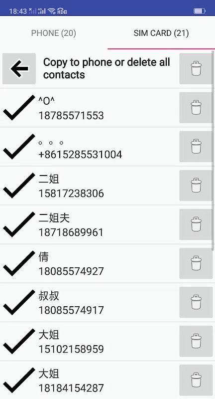 Удалить номер SIM-карты один за другим / удалить все номера SIM-карты.