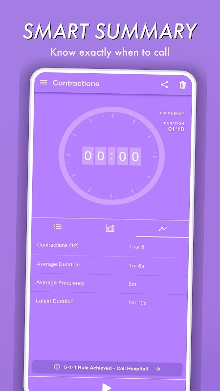 Благодаря нашему интеллектуальному таймеру схваток вы никогда не пропустите момент звонка в больницу. Идеально подходит для будущих родителей, доул и партнеров по родам.