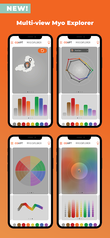 • Динамическое представление миоэлектрического паттерна в реальном времени в зависимости от входных сигналов 8 Coapt миоэлектрических (ЭМГ).