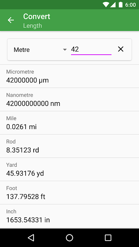 - Auto detect (beta): don't know exactly what unit you want to convert? Type it into auto detect, and let the app figure it out!