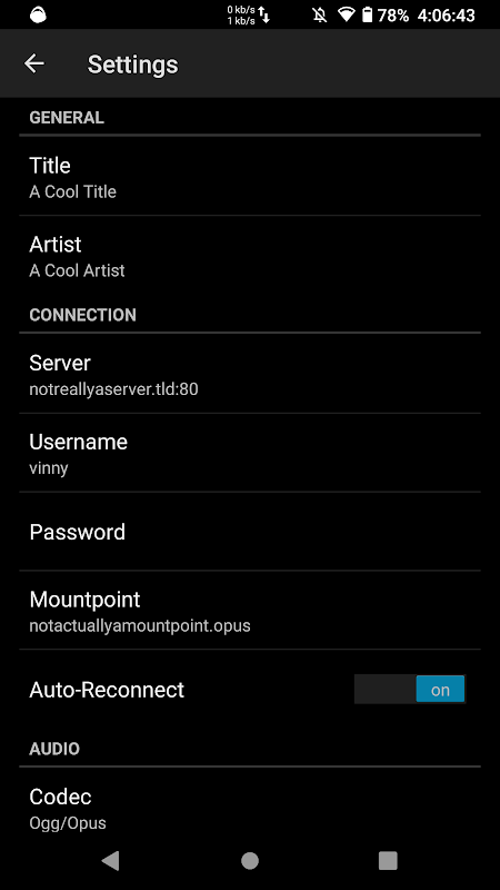 - Транслируйте аудио в реальном времени с устройств Android на Icecast
