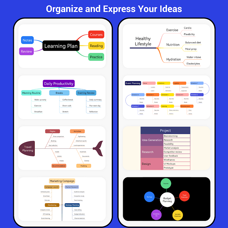 Cool Mindmap — это мощное приложение для создания интеллект-карт, документов и таблиц, которое поможет вам легко и эффективно организовать идеи и знания. С помощью Cool Mindmap вы можете легко создавать интеллект-карты, документы и таблицы, четко систематизировать знания, эффективно проводить мозговой штурм и удобно обмениваться идеями.