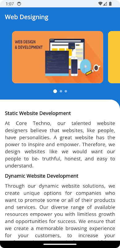 Это приложение используется для отображения услуг и функций, предоставляемых Core Techno. Любой человек может получить доступ к основной и запросить информацию о нашей организации.