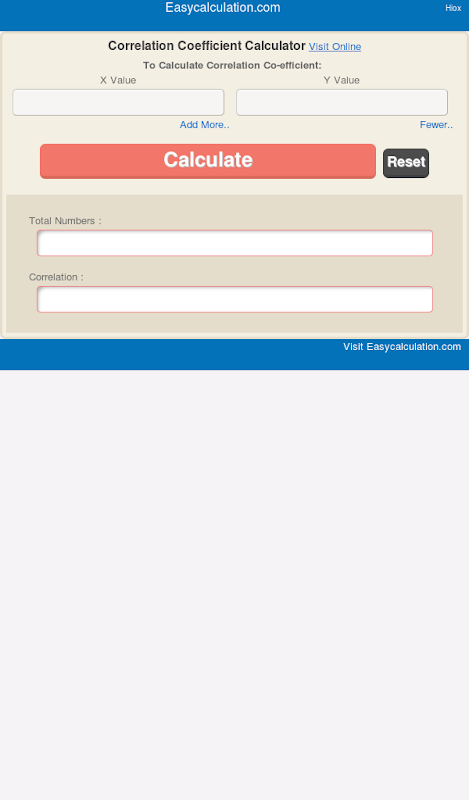 Online calculator to calculate correlation coefficient from a set of statistical data.