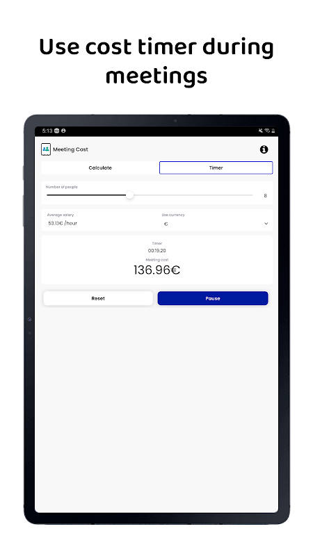 • Отслеживание расходов на собрания в режиме реального времени: наблюдайте, как затраты в реальном времени накапливаются во время собраний.