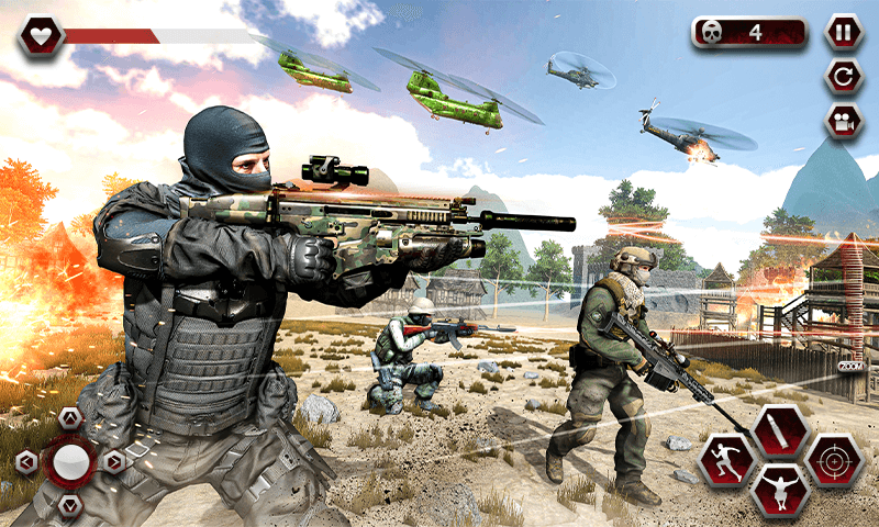 Your weapon operation ability. Only good operational control in the war game mission in order to play the power of a variety of weapons, fighting scenes in this third person shooter game have some awesome stunning remarks. It's is very action & strike base hits to play this game game in two different modes like in one side you are playing third person shooting game & on other hand this first-person shooter game, you can unlock and open all levels & missions. Action shooting game, only aim and shoot, and the modern enemy tough soldiers, assault soldiers, commanders fighting. Just fire with your guns like AK47, Grenades & Snipers and kill the enemy, let us start to play the world's greatest military attack game where you as a PVP shooter have unstoppable qualities to shoot & kill. Command your National Army squad cause you are brave & skilled leader for this mission.