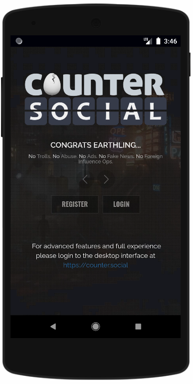 CounterSocial - первая платформа социальных сетей, которая занимает позицию абсолютной нетерпимости по отношению к враждебным странам, учетным записям ботов, троллям и сетям дезинформации, которые используют НАШИ собственные платформы социальных сетей и свободы для участия в операциях влияния против нас.