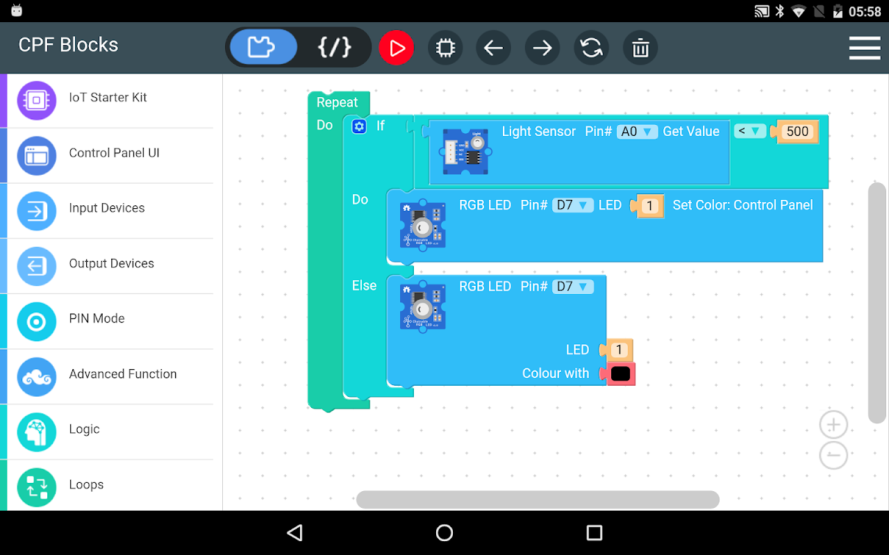 Это приложение используется для управления Arduino Leonardo с помощью простого перетаскивания блоков