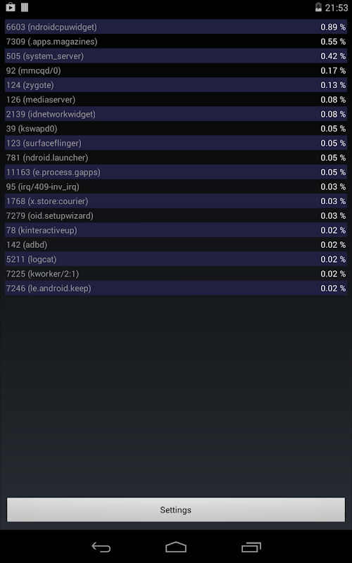 7. Press the widget to see the process list