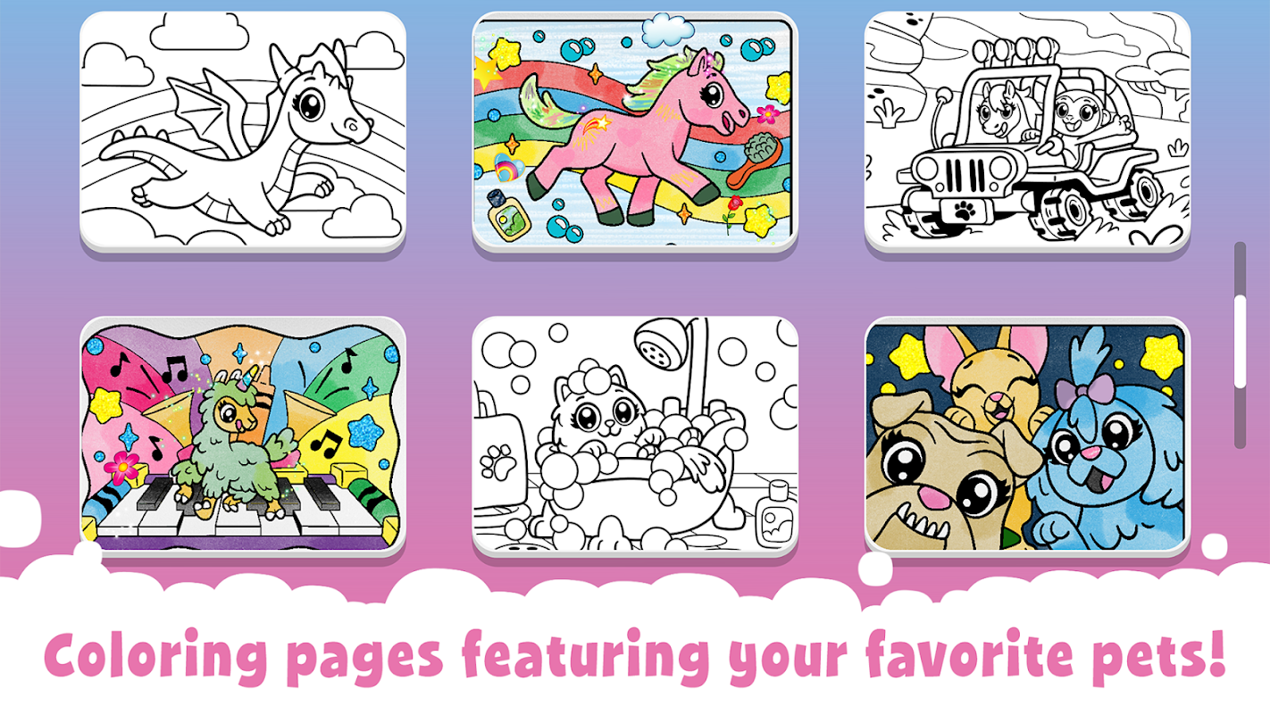 • Регулярно добавляются новые питомцы для раскрашивания, новые места для исследования и способы ухода за питомцами