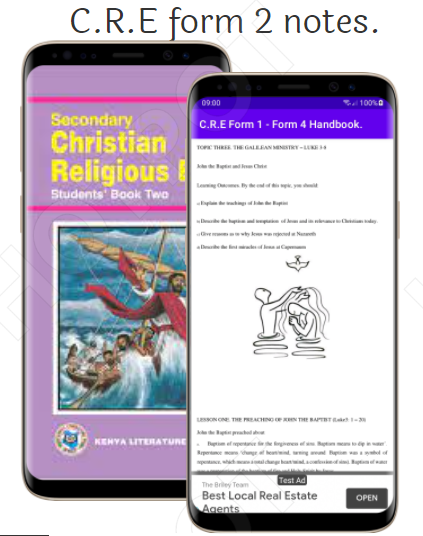 CRE: формы 1–4 Klb заметки собирают записи христианского религиозного образования из форм 1–формы 4. Приложение предназначено для того, чтобы вооружить учащихся знаниями и опытом для решения вопросов национального экзамена CRE KCSE. Приложение CRE: Form 1 - 4 Klb отмечает следующие темы в программе: