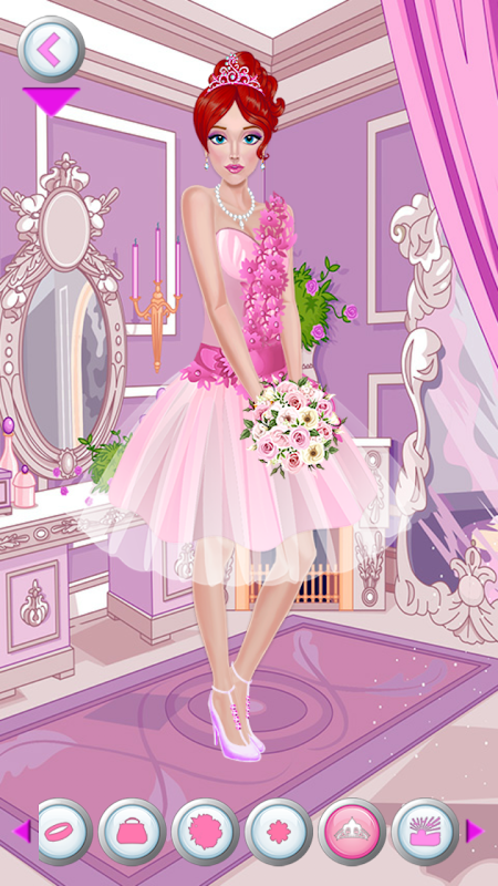 В этом фантастическом свадебном платье для девочек вы можете выбрать одну из трех свадебных моделей. Возьмите любимую в свой виртуальный салон моды и выберите для нее самую красивую прическу невесты, короны и цветы для волос. Помогите ей выбрать прохладный мешок и обувь. Сделайте ее похожей на настоящую икону моды в одном из великолепных свадебных платьев! Пусть ваша невеста сияет, как звездная девушка с красивейшими драгоценностями на ней. Есть много свадебных идей, вам просто нужно быть креативными, использовать свое воображение и сделать это платье незабываемым! Наконец, выберите один из множества фонов, сохраните свою модель и возьмите фотографию невесты. Установите его как самые красивые обои для вашего телефона Android или поделитесь им со своими друзьями и семьей. Поделитесь со всеми людьми радостью, что вы, наконец, нашли лучшие игры для невест для себя!