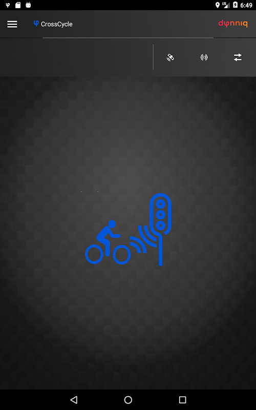 Приложение не запрашивает операции во время вождения. Если приложение не находится рядом со светофором, локализация GPS будет уменьшена, чтобы минимизировать расход заряда батареи. Вы можете оставить приложение работать в фоновом режиме или остановить и запустить его, если хотите. Когда приложение находится рядом с интеллектуальным светофором, вы увидите, как логотип Dynniq изменится на велосипедиста.