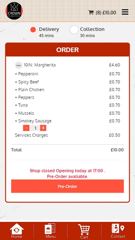 Crown Takeaway приложение для онлайн-заказа еды
