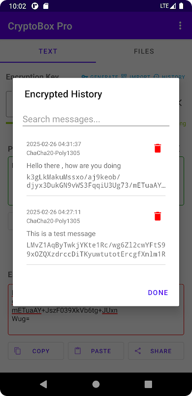 Защитите свои конфиденциальные сообщения и файлы с помощью шифрования военного уровня. CryptoBox Pro предлагает удобный интерфейс для шифрования текста и файлов с использованием стандартных алгоритмов (AES-GCM и ChaCha20-Poly1305).