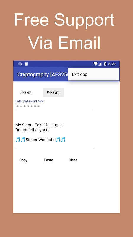 Это приложение зашифровывает ваш текст на любом языке, используя пока что не взломанную криптографию AES-256. Для защиты ваших заметок используется шифрование AES-256, см. Https://en.wikipedia.org/wiki/Advanced_Encryption_Standard, одну из самых надежных схем шифрования. Каждый текст, который вы вводите в это приложение, зашифрованы с вашим ключом шифрования или паролем. Ключ или пароль не хранятся ни в каком виде на вашем телефоне или где-либо еще.