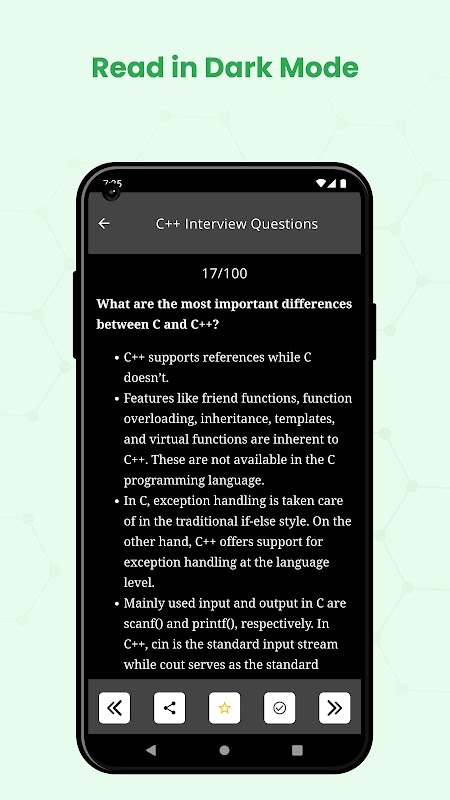 Приложение «Вопросы для интервью CS IT» имеет удобный интерфейс. Просто откройте приложение, выберите нужную тему языка программирования и получите доступ к полному списку вопросов и ответов. Приложение, созданное для улучшения ваших компьютерных знаний и повышения вашего IQ, охватывает все, от языков программирования высокого до низкого уровня.