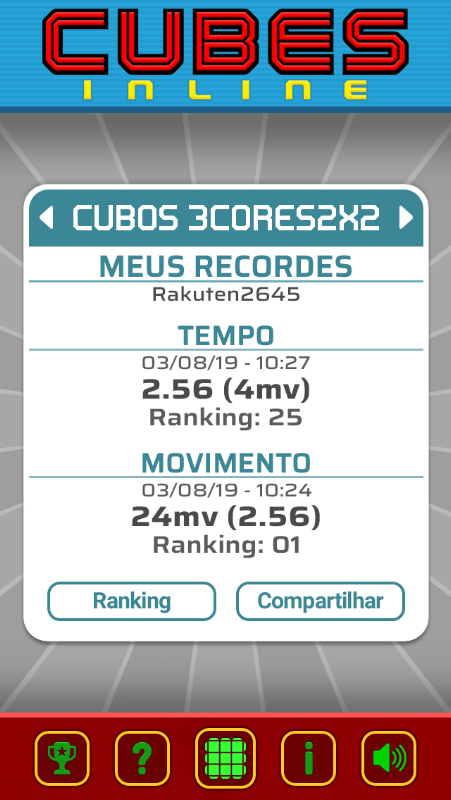 Record your records and follow your ranking by time and by movement in the official ranking of Cubes Inline that is independent of your mobile operating system.